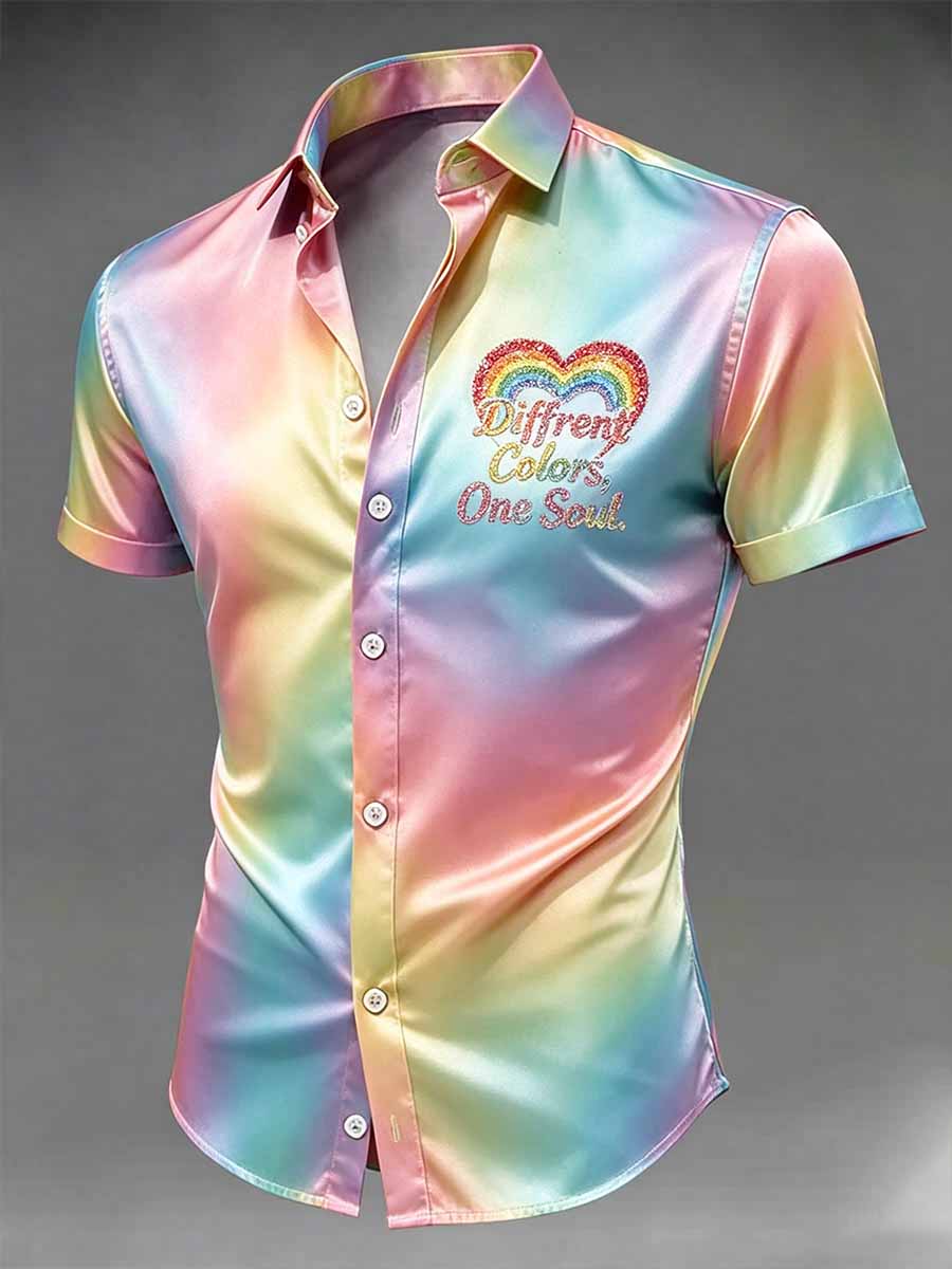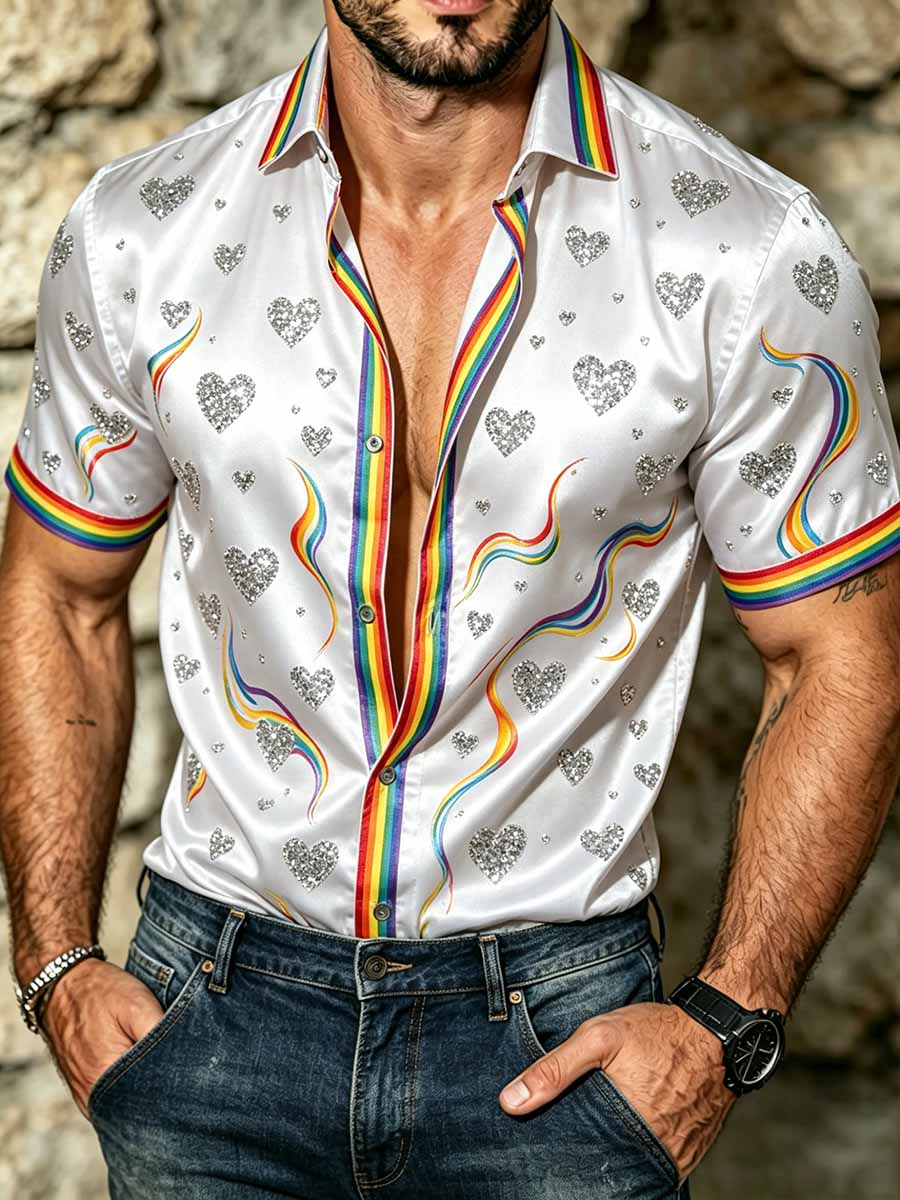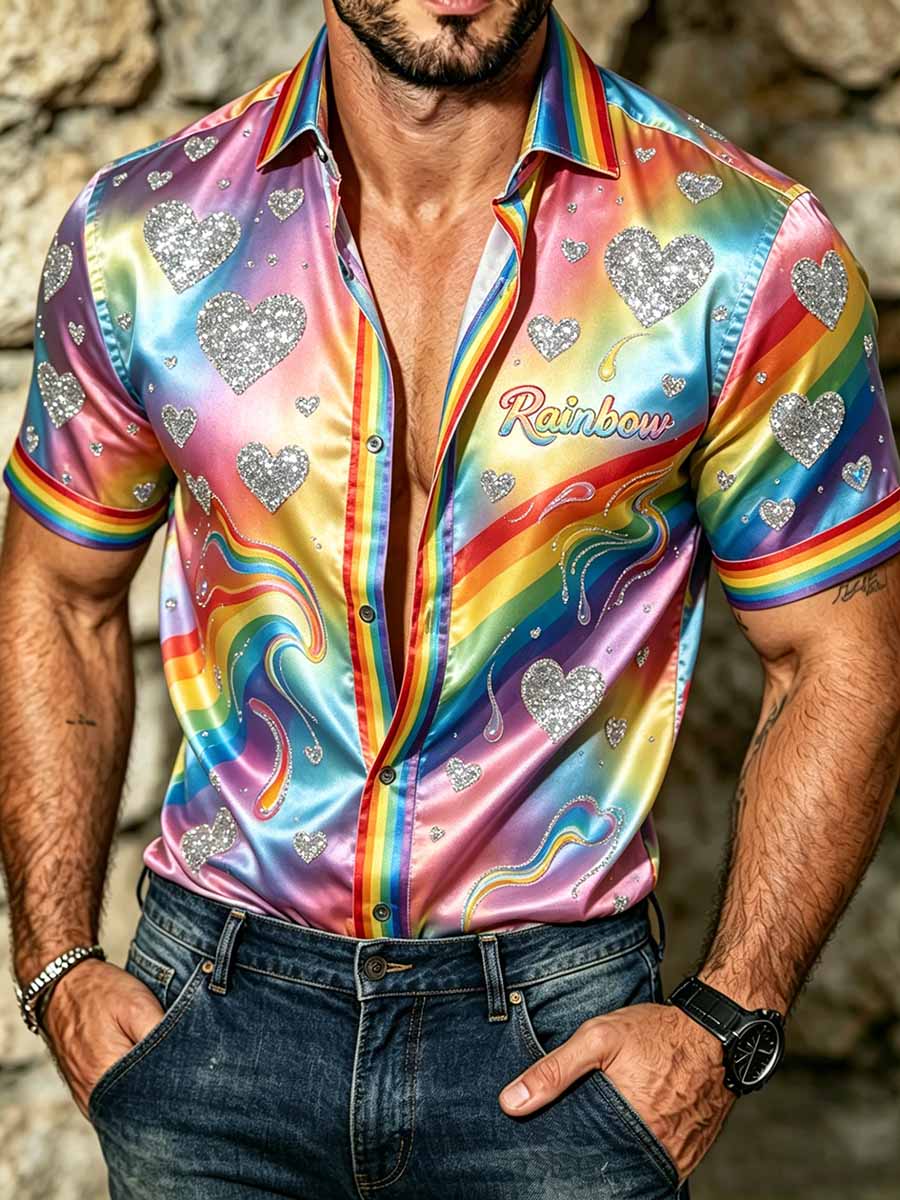 Herren-Retro-Freizeithemd mit Regenbogenmuster