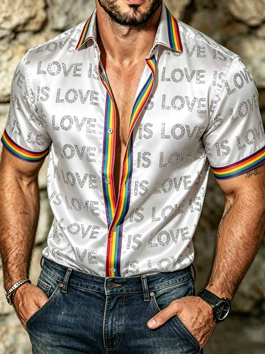 Herren-Pride-Monat Regenbogenmuster-Print Freizeit-T-Shirt