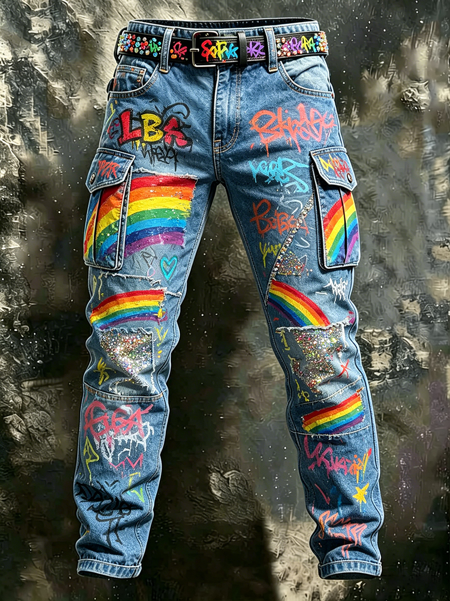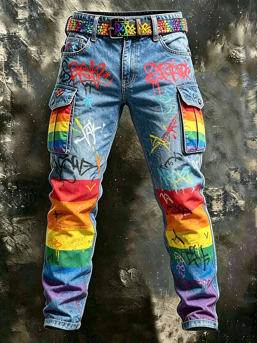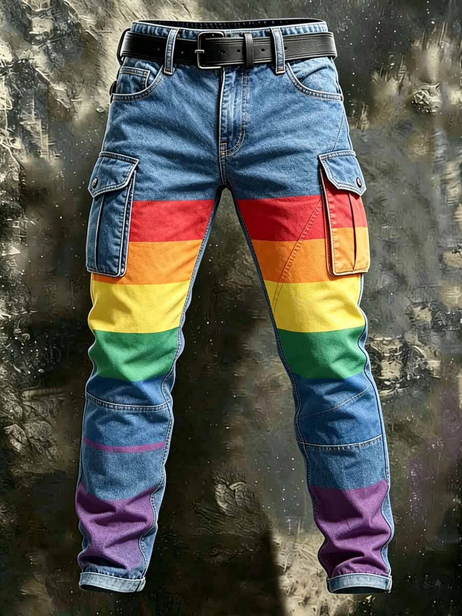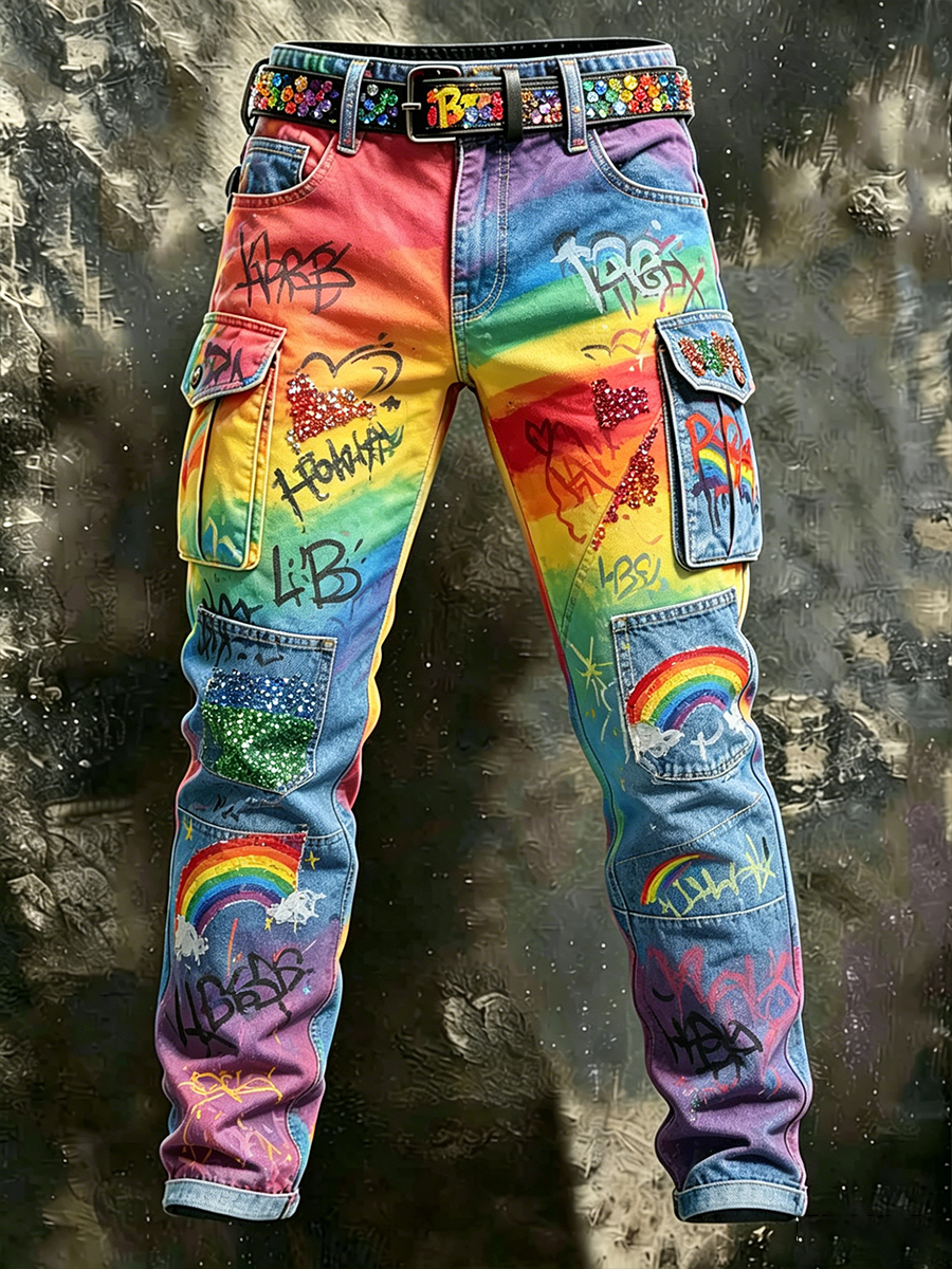 Herren-Retro-Freizeithose mit Regenbogenmuster und Print für die Arbeit