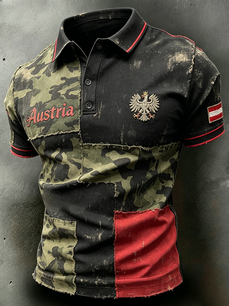 Herren-Camouflage-Poloshirt mit verwaschenem Print