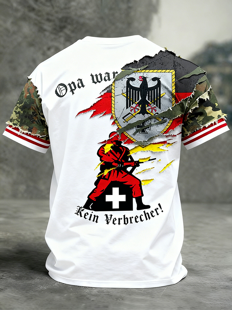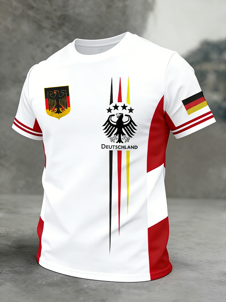 Herren Vintage deutsche Flagge Print Casual T-Shirt