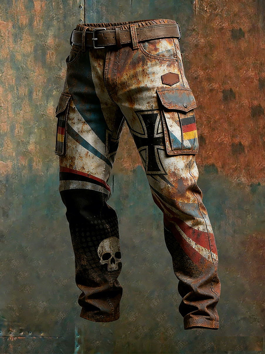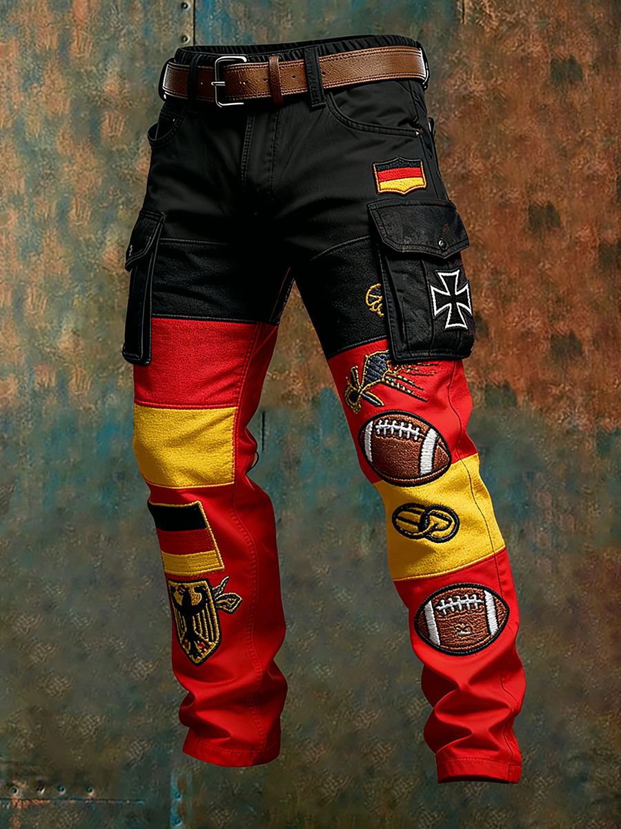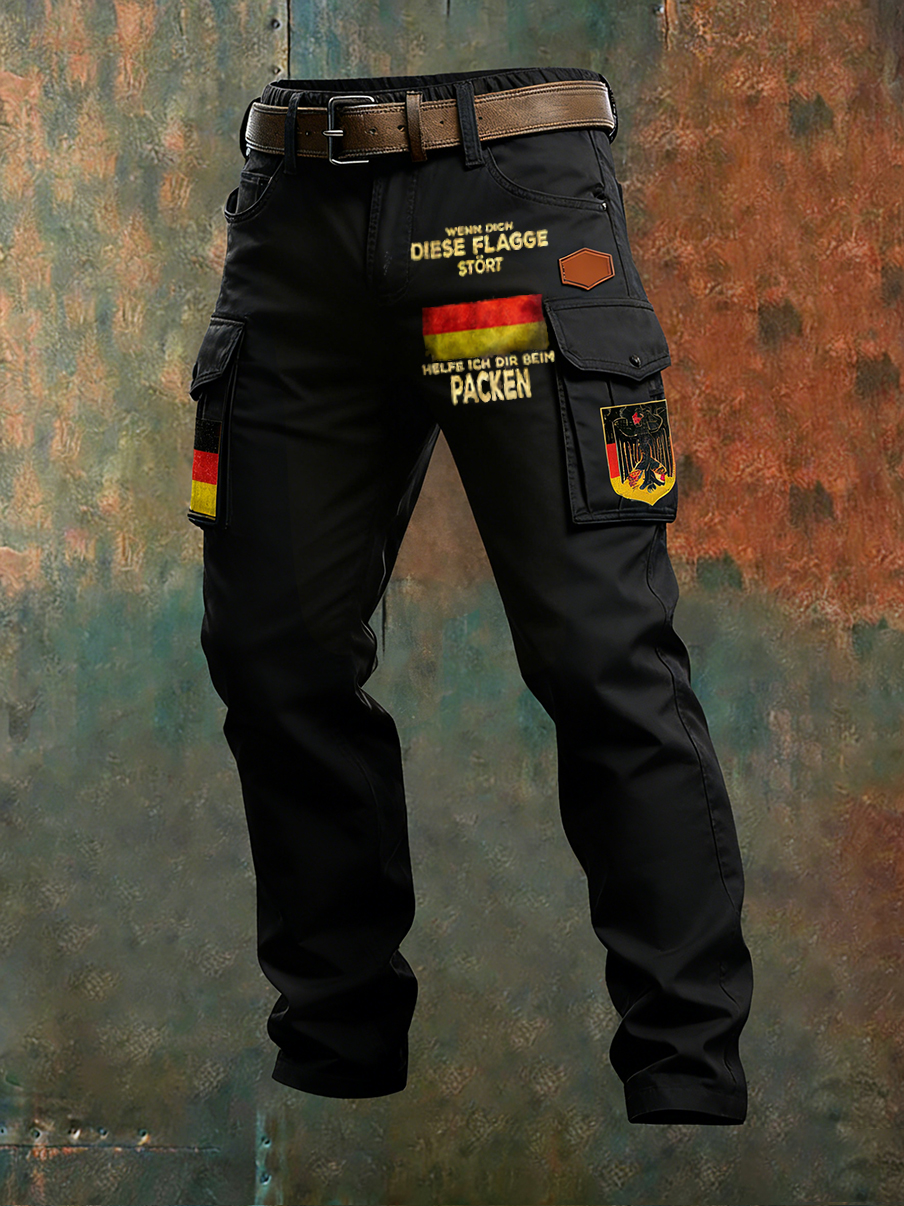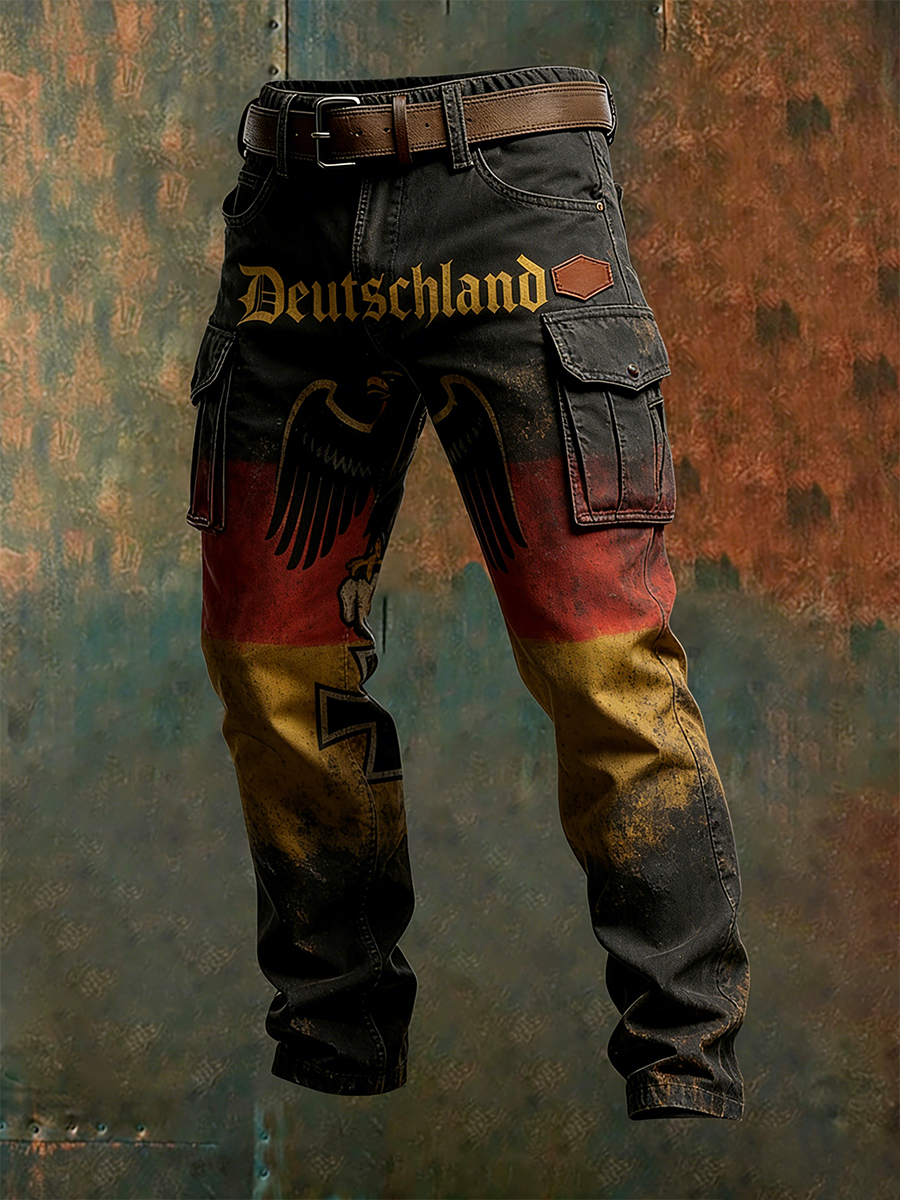 Herren-Cargo-Hose im Vintage-Stil mit deutscher Flagge