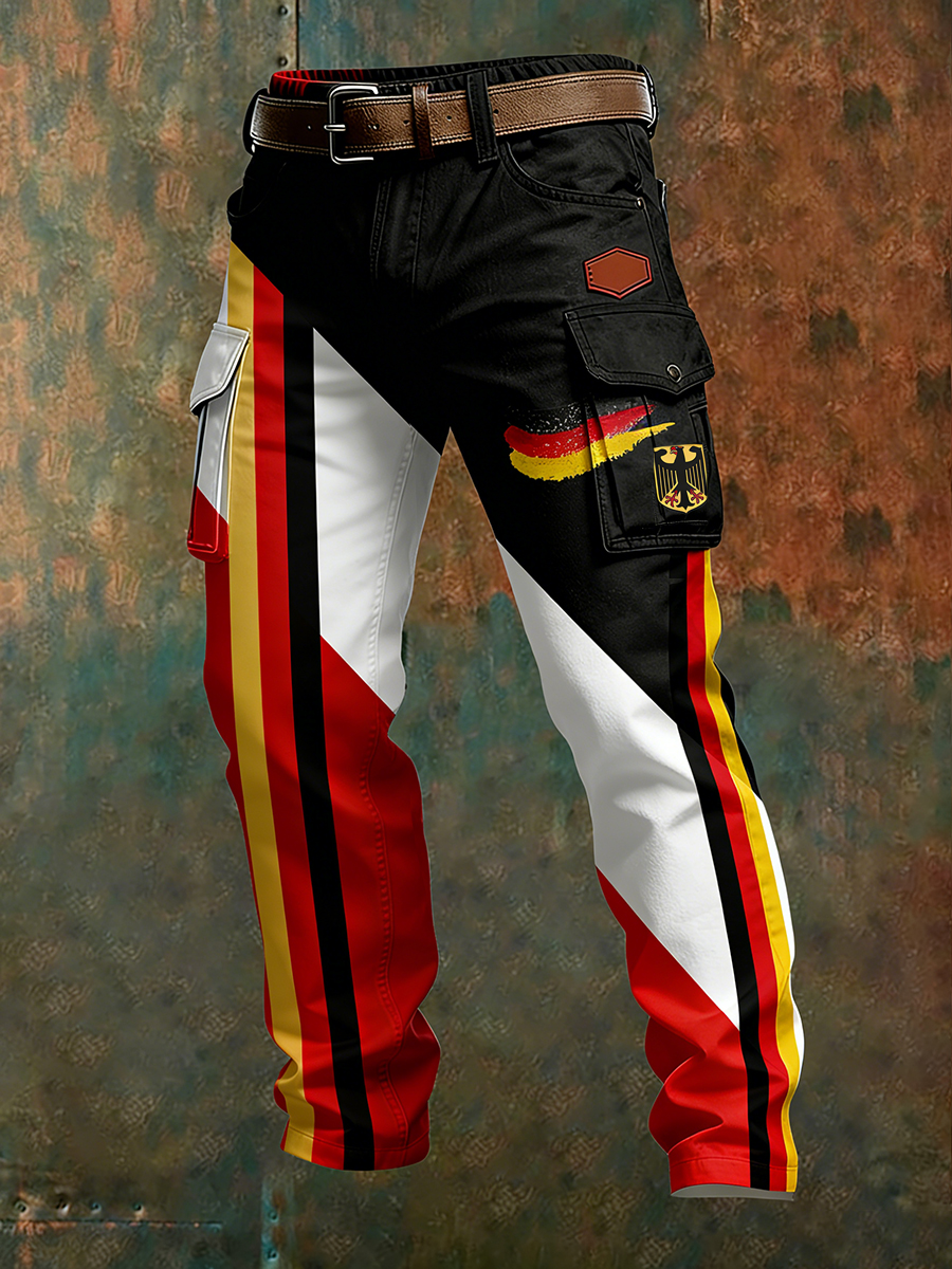 Herren Vintage Deutsche Flagge Print Freizeit-Cargo hosen