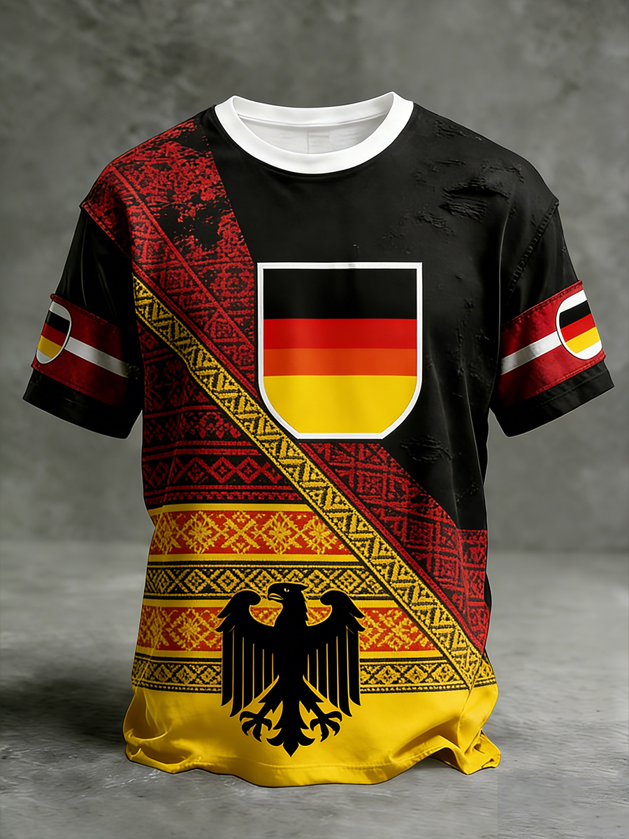 Men's Vintage German Flag Print Casual T-Shirt