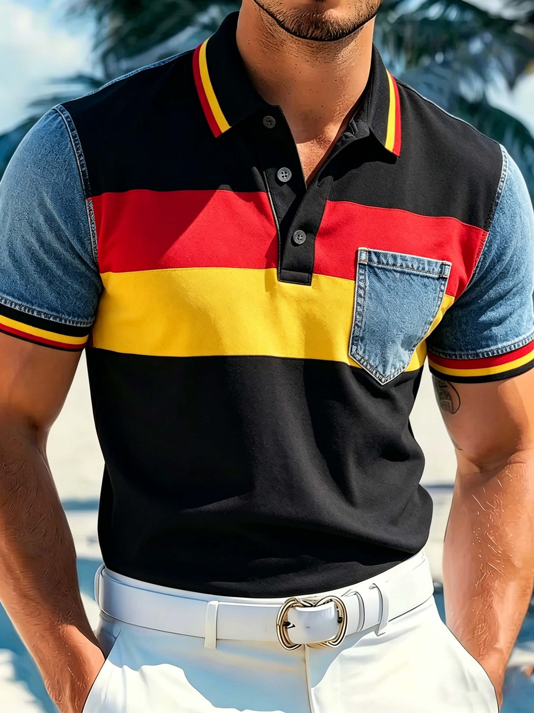 Herren-Polo mit Kunstprint im Farbschema der deutschen Flagge