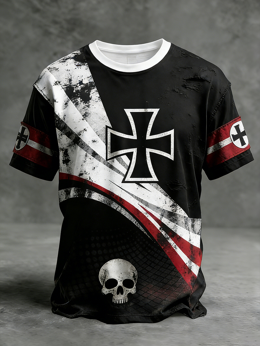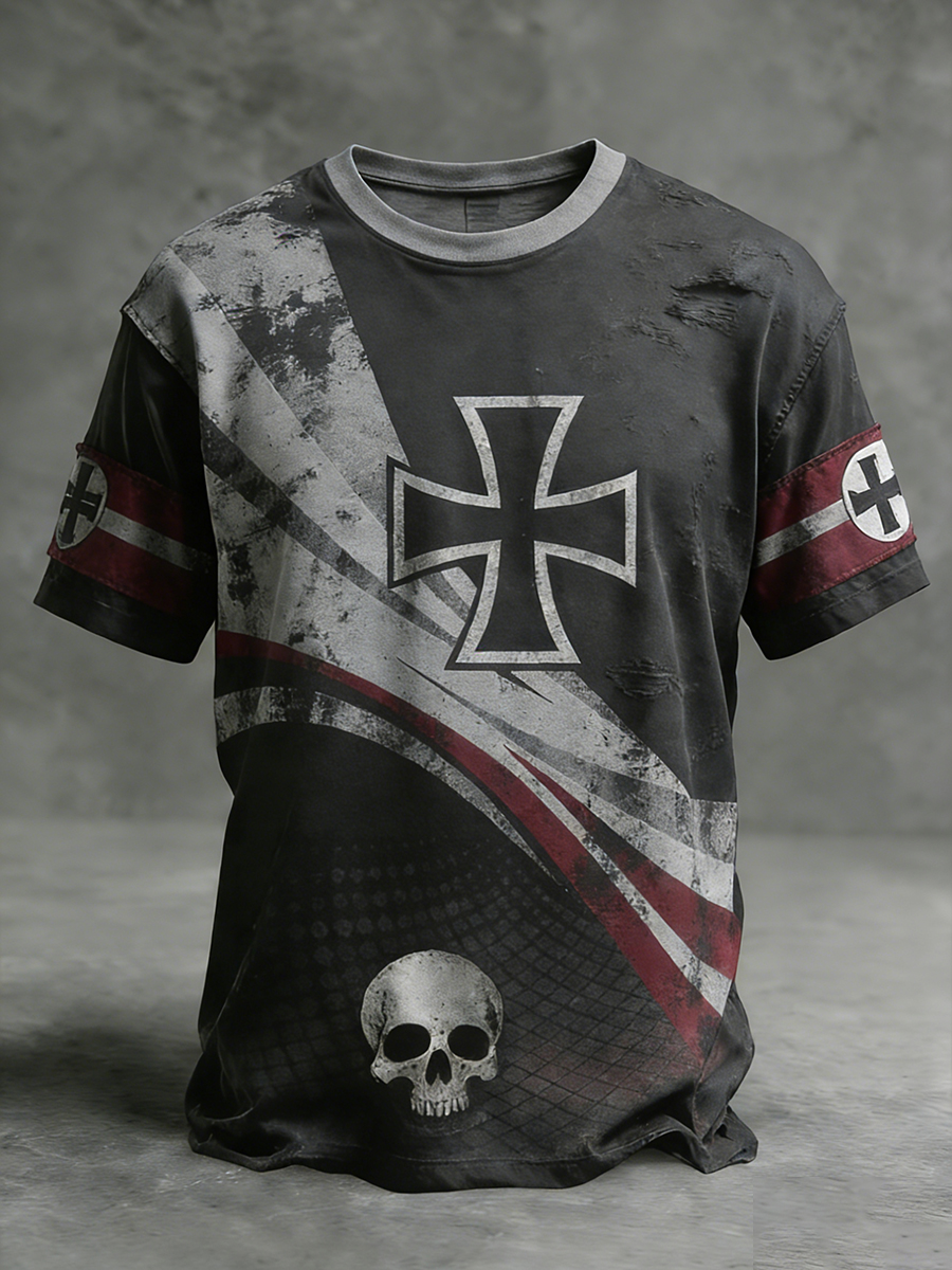 Men's Vintage German Flag Print Casual T-Shirt