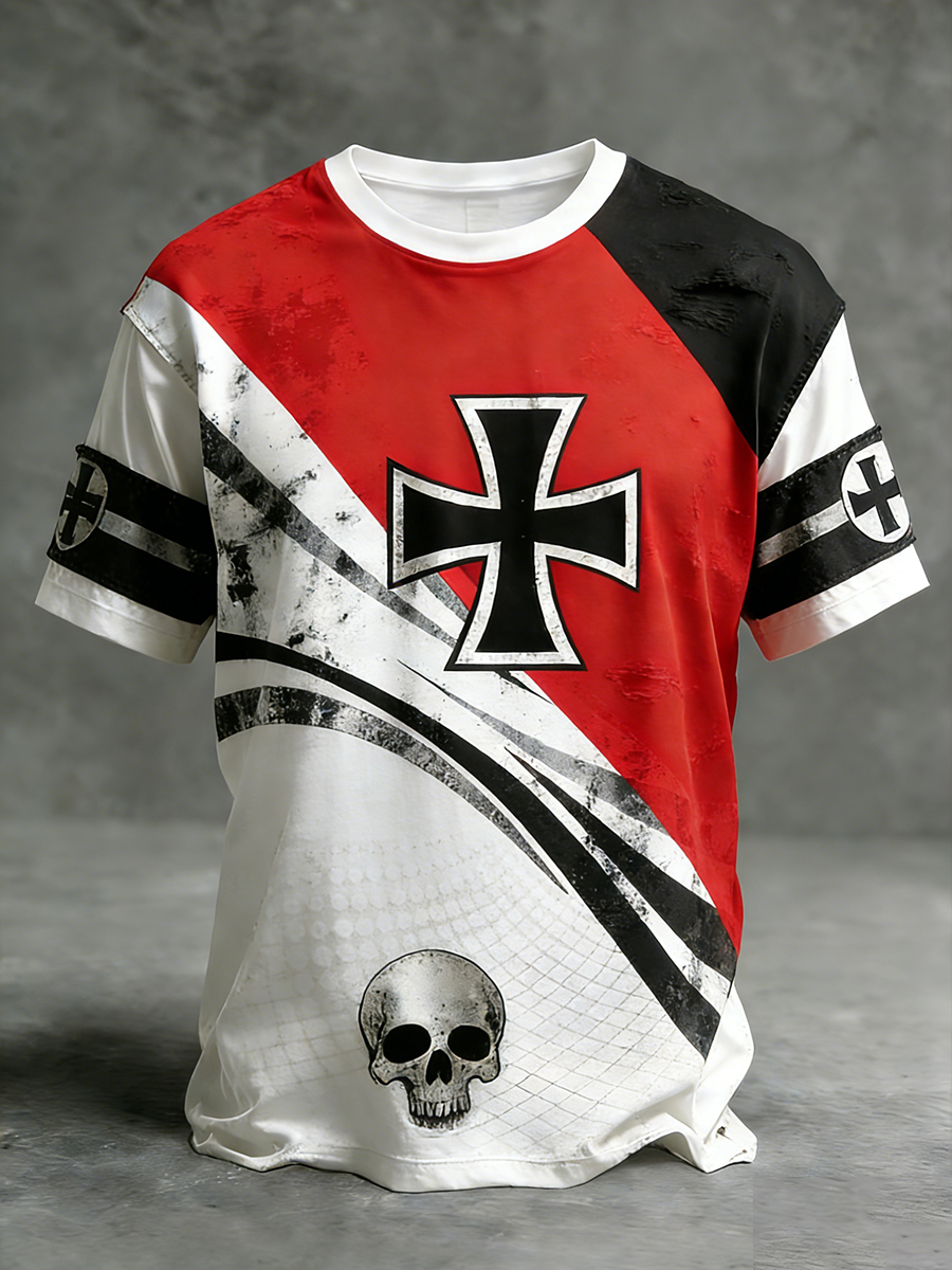 Men's Vintage German Flag Print Casual T-Shirt