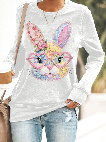 Damen-Blumen-Häschen-Patchwork-Print-Sweatshirt