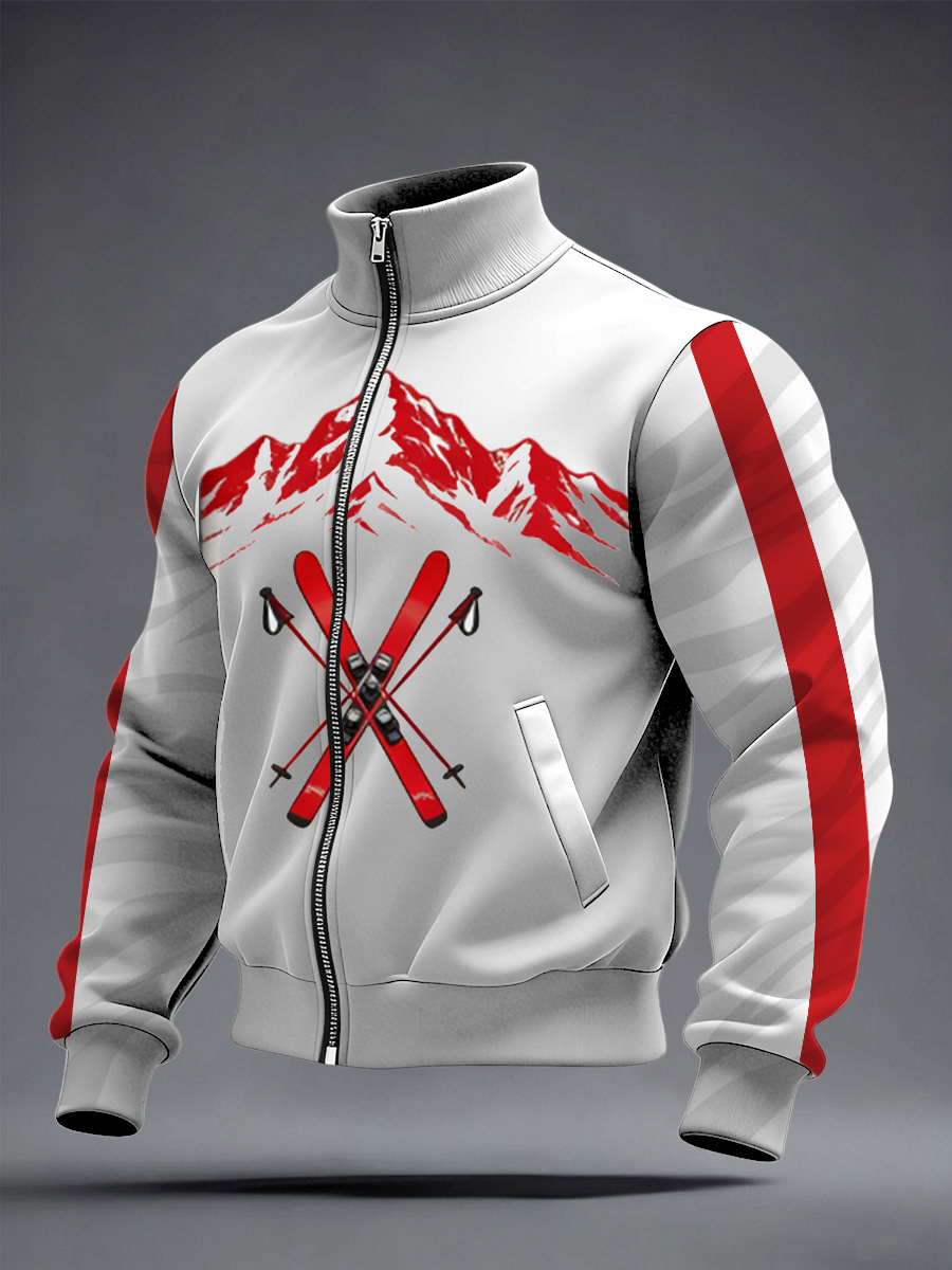 Herren dynamische rot-weiße Ski-& Berg druck Trainings jacke