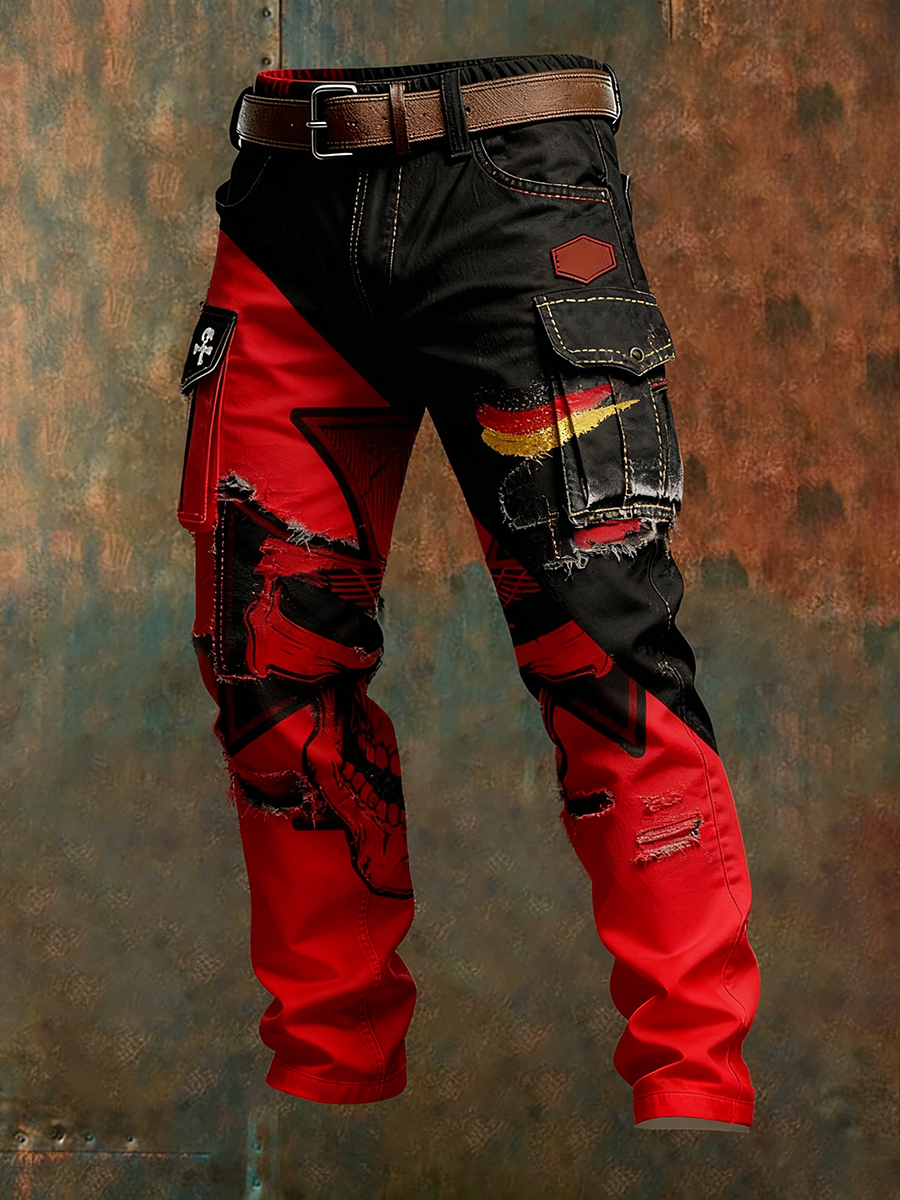 Herren Vintage Deutsche Flagge Print Freizeit-Cargo hosen
