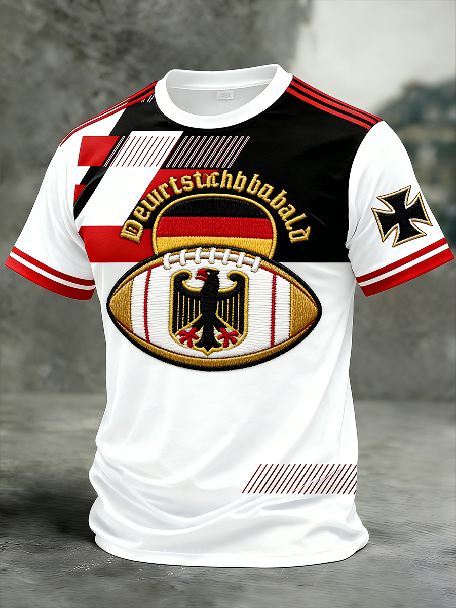 Herren Vintage deutscher Rugby-Fan bedrucktes lässiges T-Shirt